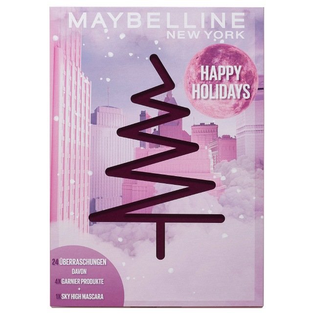 Adventskalender von Maybelline New York mit 24 Make-up- und Nagelprodukten für den perfekten Look Prall gefüllter Adventskalender mit 24 besonderen Überraschungen hinter jedem Türchen Der Adventskalender von Maybelline New York enthält 21 Originalprodukte sowie drei Goodies Neben Produkten von Maybelline New York sind auch vier attraktive Produkte von Garnier enthalten Zu den enthaltenen Überraschungen zählen unter anderem Produkte für Augen, Lippen, Nägel und Gesicht