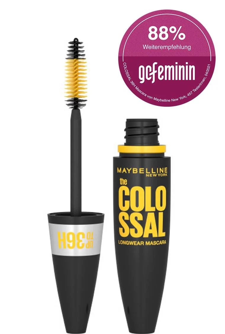 Die Volum' Express Colossal 36H Mascara von Maybelline New York verleiht den Wimpern starkes Volumen und sorgt für vollere, dichtere Wimpern. Die innovative 36 Stunden Formel und die Mega-Volumen-Bürste hüllen die Wimpern in ein intensives Schwarz und sorgen für bis zu 36 Stunden Halt und unwiderstehliches Volumen, ohne zu verwischen. Egal, ob Blinzeln oder Zwinkern – unsere wasserfeste Volum' Express Colossal 36H Mascara hält!